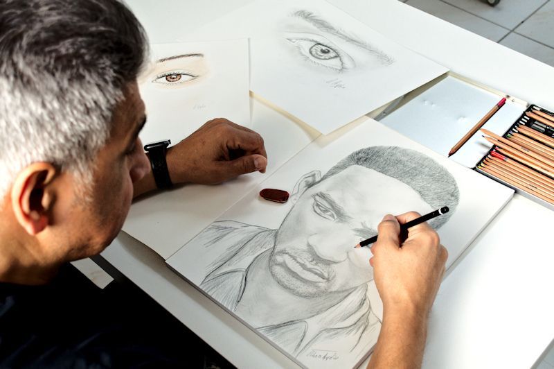 Sein künstlerischer Stil vereint vielfältige Techniken und zeichnet sich durch eine realistische, moderne Ästhetik aus, die das Publikum fasziniert. In seinen Werken verbindet er seine gesammelten Erfahrungen und schafft Kunst, die durch ihre emotionale Tiefe und technische Brillanz überzeugt. Seine Fähigkeit, auf persönliche Weise Geschichten durch seine Porträts zu erzählen, hebt ihn von anderen Künstlern ab und lässt den Betrachter eine starke emotionale Verbindung zu seinen Werken spüren.